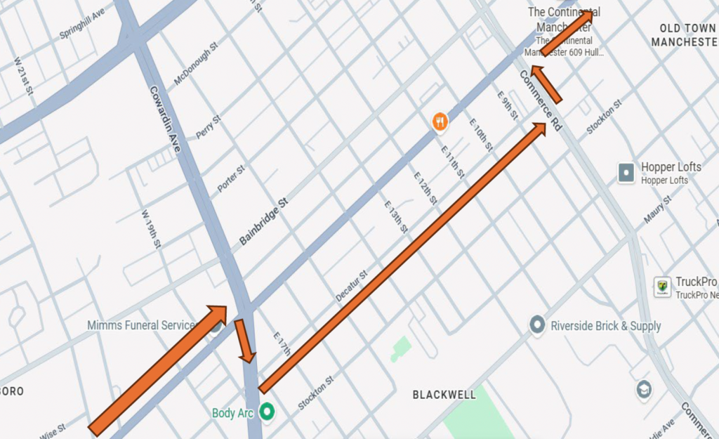 Hull Street between Route 1 and Commerce Road will be closed for a community event.